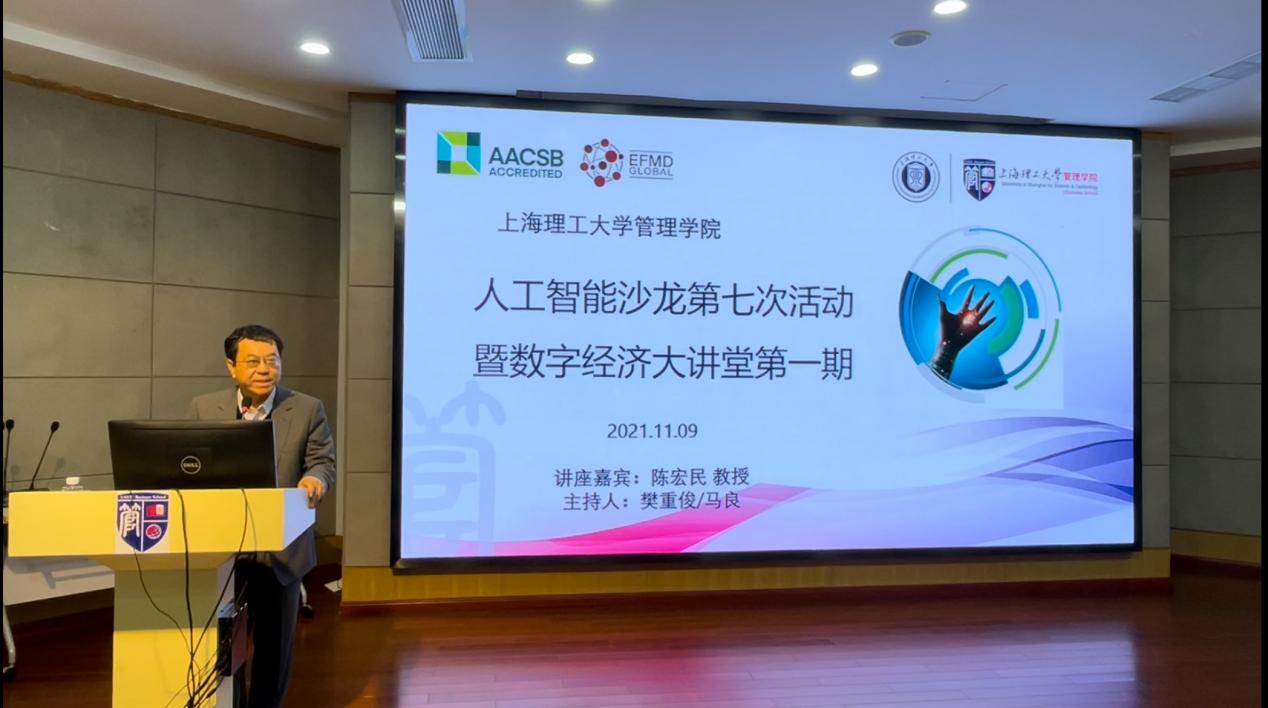 活动临近尾声之时,马良教授代表管理科学与工程学科及在座师生向陈宏民教授表达了真挚的感谢,介绍了我们学院系统工程、管理科学与工程学科与上海交通大学经管学院的渊源,并对本次“人工智能与数字经济大讲堂”活动做出高度评价。