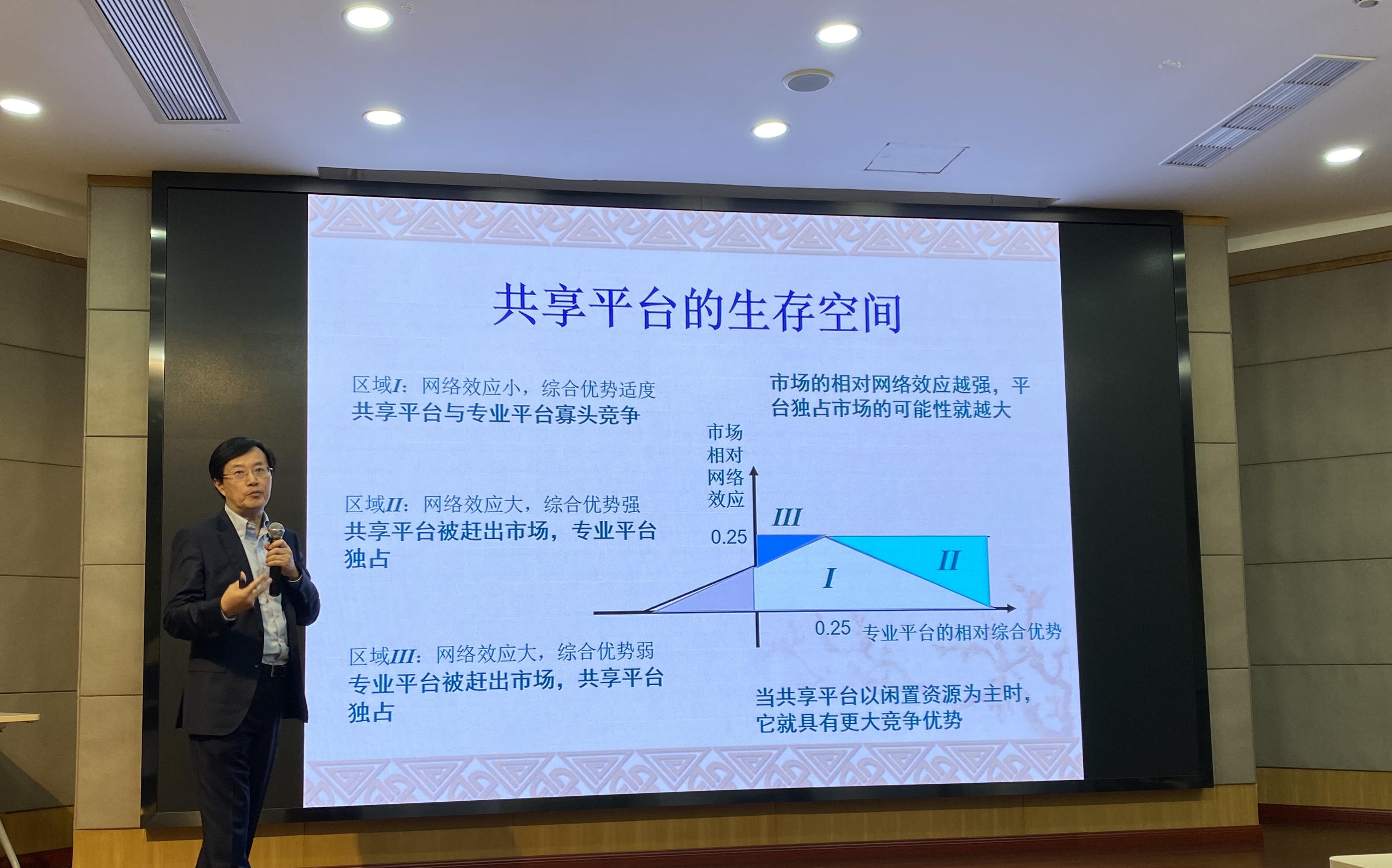 本次讲座中,陈宏民教授首先通过通俗易懂的语言和生动形象的案例探讨了共享经济发展的三阶段及其特征和转换机制;随后,基于双边市场理论构造了共享平台与专业平台的竞争模型,并深入讨论了两者的优劣势及其在市场上此消彼长的关系和条件;最后,通过社会福利函数分析总结了共享经济对社会福利的影响效果。