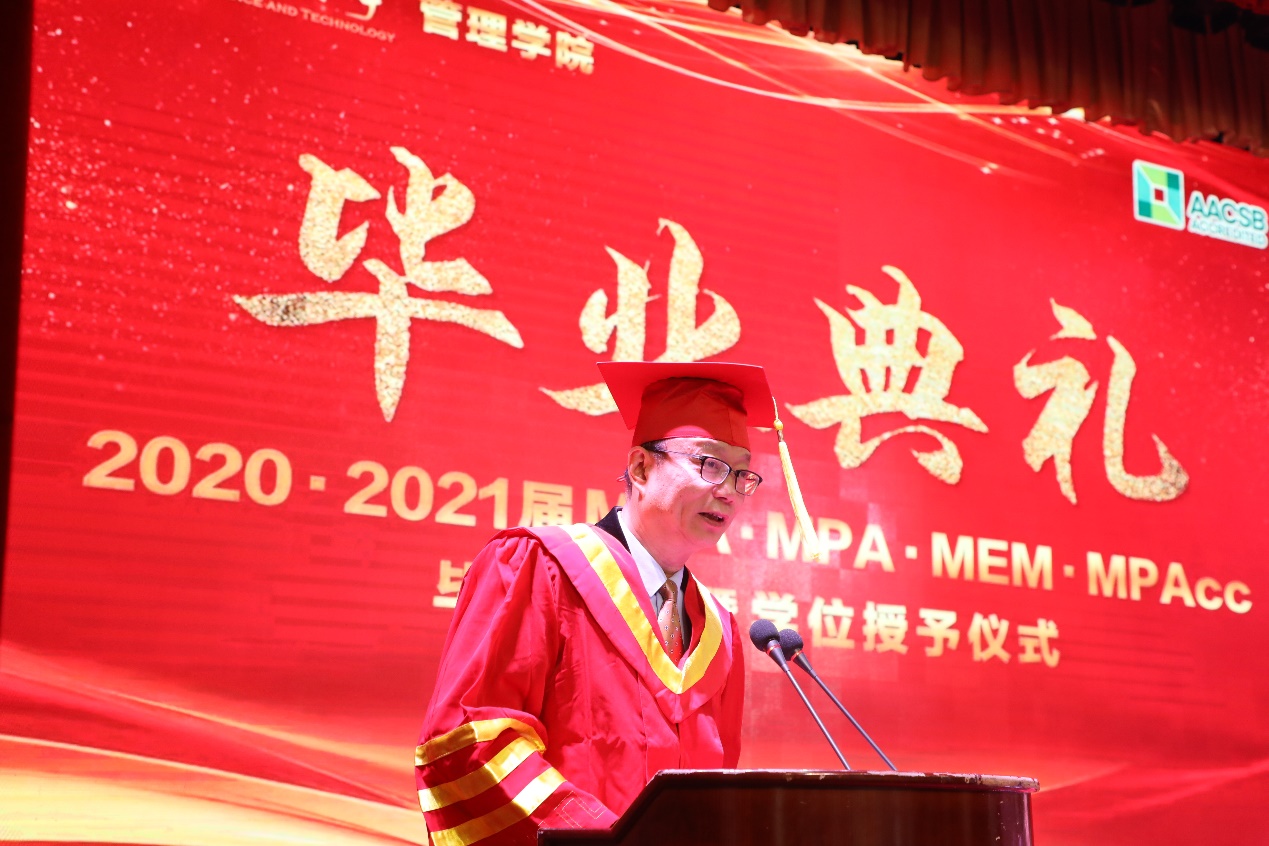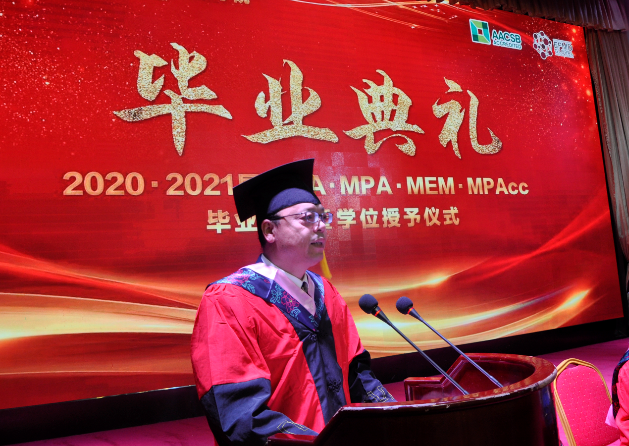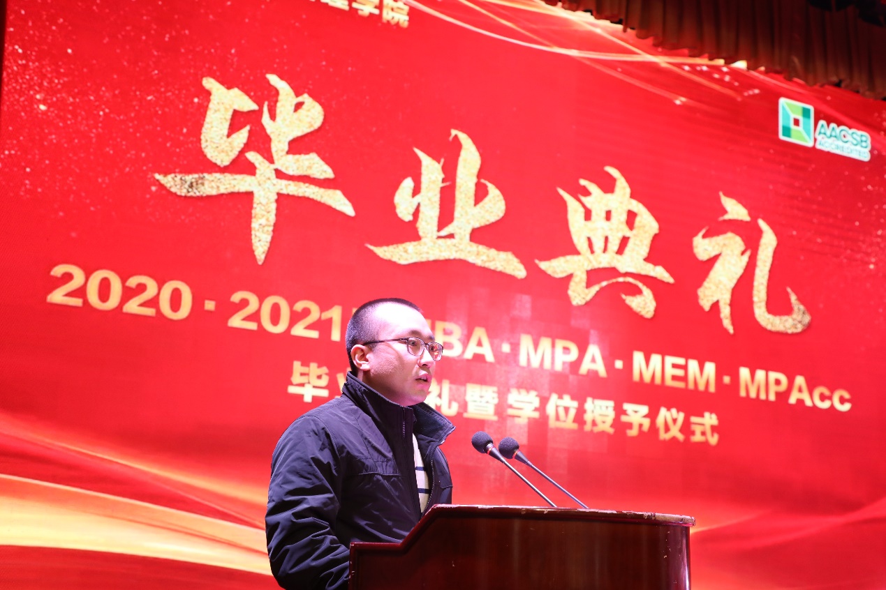 赵来军院长首先致辞,他代表BOB半岛·体育官方网站对各位同学顺利毕业并取得硕士学位表示热烈祝贺!同时感谢各位领导、嘉宾、老师参加毕业典礼,共同见证2020届、2021届专业学位同学人生中重大而又庄严的时刻。