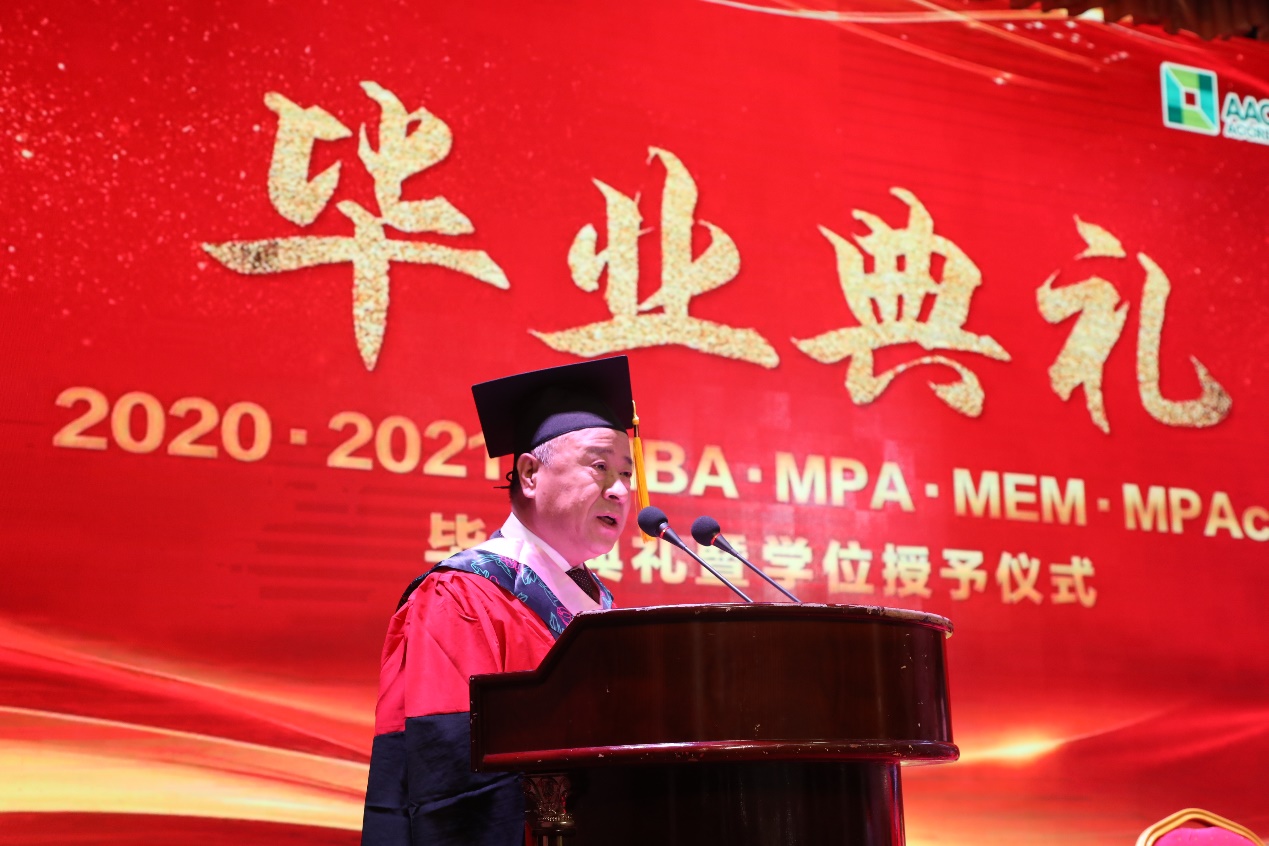典礼最后,刘平副校长讲话。他首先代表上海理工大学,对各位顺利毕业、取得MBA/MPA/MEM/MPAcc专业学位表示热烈的祝贺!向为学校的教育事业发展付出了智慧与辛劳的教师及员工们表示崇高的敬意!并对以上学生、教师、校友代表的发言给予了充分的肯定。