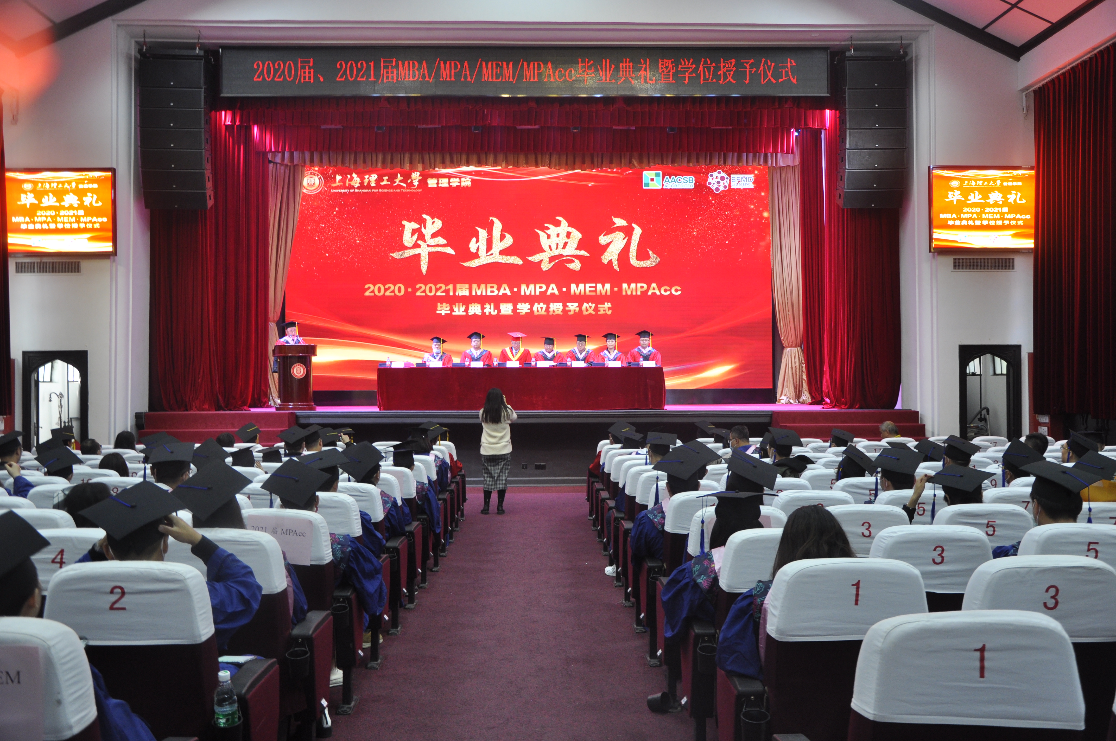 11月14日上午,上海理工大学2020届、2021届工商管理硕士(MBA)、公共管理硕士(MPA)、工程管理硕士(MEM)、会计硕士(MPAcc)毕业典礼暨学位授予仪式在上海理工大学大礼堂隆重举行。上海理工大学副校长刘平、研究生院副院长崔国民、BOB半岛·体育官方网站院长兼专业学位教育中心主任赵来军、BOB半岛·体育官方网站副院长兼专业学位教育中心副主任张永庆、副院长兼MBA项目主任张峥、MPA项目主任车丽萍、MEM项目主任叶春明、MPAcc项目副主任于谦龙、MEM首届校友会会长田沛奇,以及专业学位导师、授课教师代表和毕业生140余人参加了典礼。毕业典礼暨学位授予仪式由BOB半岛·体育官方网站副院长兼专业学位教育中心副主任张永庆主持。