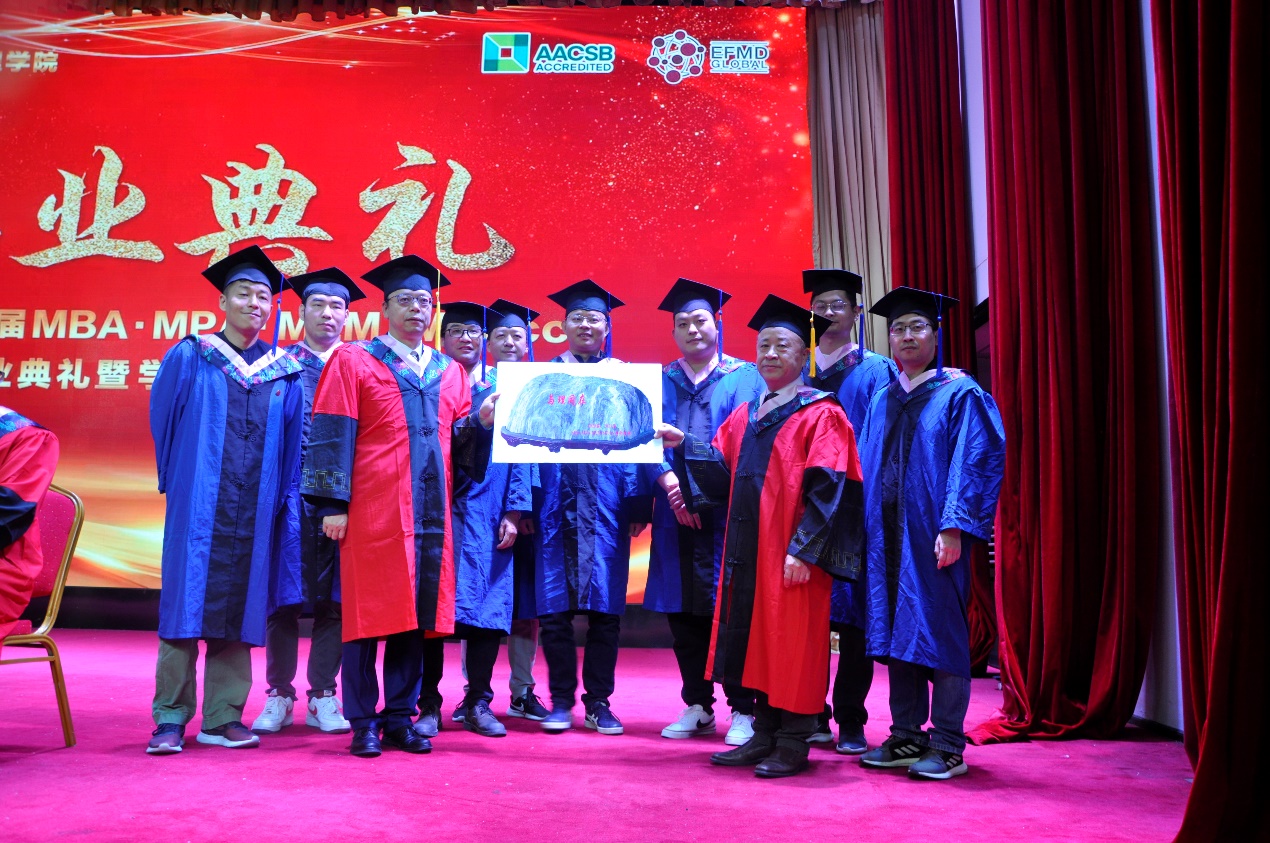 最后,刘平副校长用校训“信义勤爱,思学志远”送给大家作为临别赠言。希望同学们无论是从商,还是供职于公共部门,都要诚实守信,不忘对真理与正义的追求,恪尽职守,勤奋进取,爱人如己,懂得感恩,把学习作为终身的任务,志存高远而又脚踏实地,成为国家和社会的栋梁,并祝同学们身体健康!家庭幸福!事业有成!