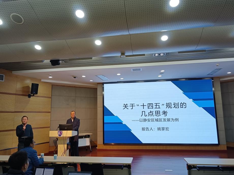 姚部长首先从历史沿革、文化特征、城区宣传和当前人口社会基本情况四个方面向大家介绍了上海市静安区发展概况。其次,分析研判了国内外政治经济形势,国际政治错综复杂,地缘政治严峻;国际经济全球化和逆全球化并存、不确定性增加。紧接着以习近平总书记视察上海的讲话精神为背景,从静安区的政府规划的战略定位、战略思维、产业选择、政策取向等角度出发,提出未来一段时间政府规划的路径,同时,对比国内外大型城市纽约、东京、北京、深圳等政府规划,总结了政府规划编制的基本经验。最后,谈到了几个思考问题:第一是城区发展的战略思维是宝贵能力,要从人口结构、经济波动、城市转型和科技变革四个象限思考战略方位问题;第二是城区经济发展如何处理存量和增量的问题以及如何处理老城和新城的问题;第三是如何发挥城区的辐射力和聚集力的问题;第四是关于精神文明如何为经济服务的问题。
