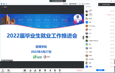 为进一步贯彻落实国家及上海市就业政策,有效推动2022届毕业生就业工作, 4月27日上午,我院召开线上就业工作推进会议,学院领导班子、各学科带头人、各系各专业负责人及毕业班辅导员参加了此次推进会。
