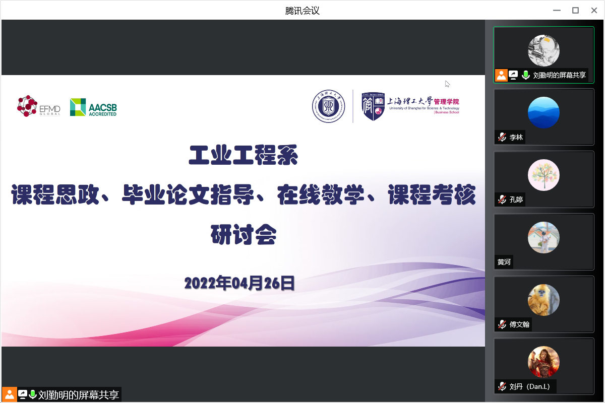 研讨会上,工业工程系主任刘勤明介绍了本学期课程思政、毕业论文指导、在线教学、课程考核的进展情况,传达了学校和学院的相关最新要求,鼓励教师积极参与学校和学院的课程思政建设和线上教育教学。之后,教师们分别针对课程思政、在线教学、毕业论文指导、课程考核做了分享与交流发言。