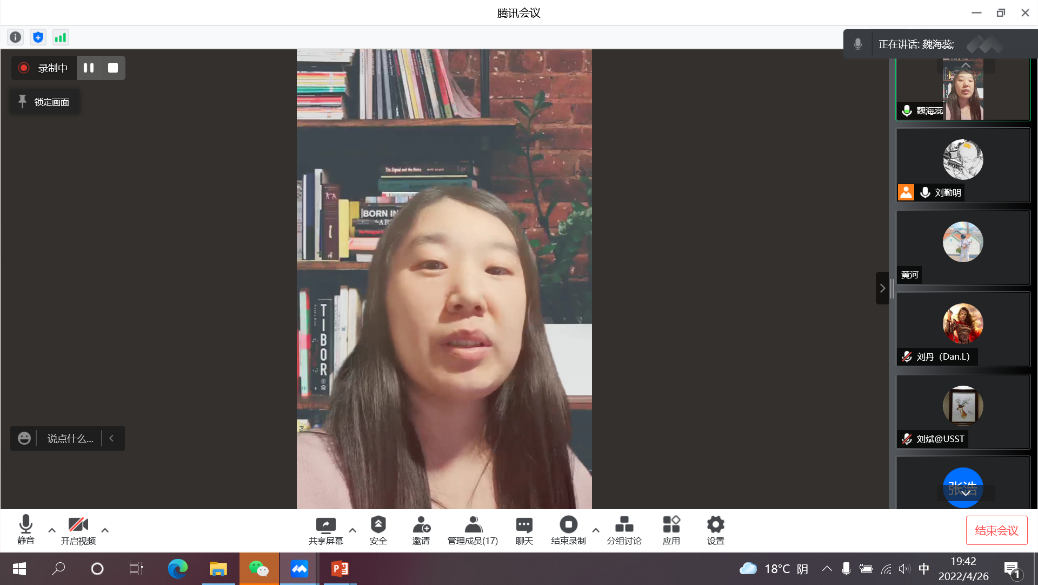 耿秀丽老师分析了课程在线教学改革的价值取向,指出了在线教学的两大挑战:一是师生缺少互动,二是不能及时收到反馈,难以立即评估学生学习状态。在本科生教学中,学生可以控制听课节奏,因此可以提前告诉学生需要思考的重难点。通过一网畅学平台,提前布置学习题目,课上再进行提问,强化学习效果。在研究生教学中,通过腾讯会议进行直播,一网畅学平台具备选人功能,可以进行随堂回答问题和作业,实时把握学生学习进展。