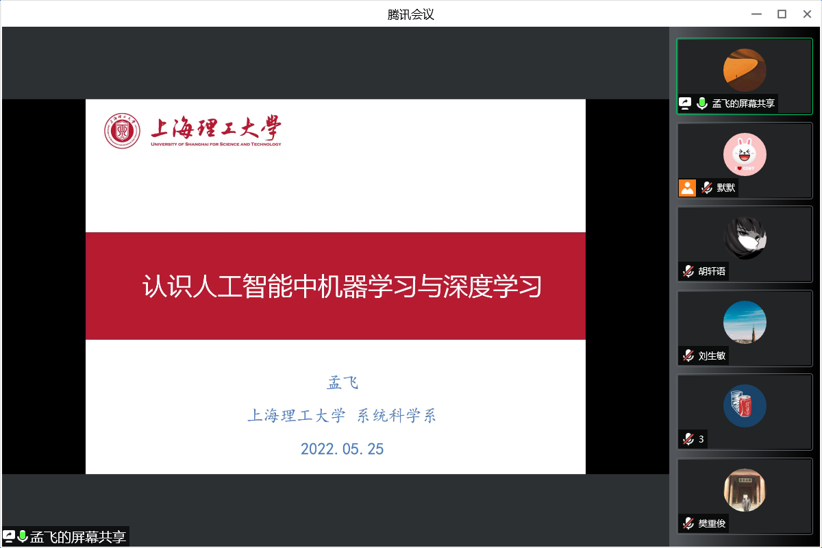 5月25日下午,沪江经管论坛系列活动(第二十七期)之青年学术沙龙在线举行。学术分享嘉宾为系统科学系副教授孟飞。沙龙由系统科学系系主任顾长贵教授主持。沙龙主题围绕人工智能技术中的机器学习与深度学习技术。BOB半岛·体育官方网站副教授刘媛华,青年教师王海英等教师及研究生80余人参加了沙龙。