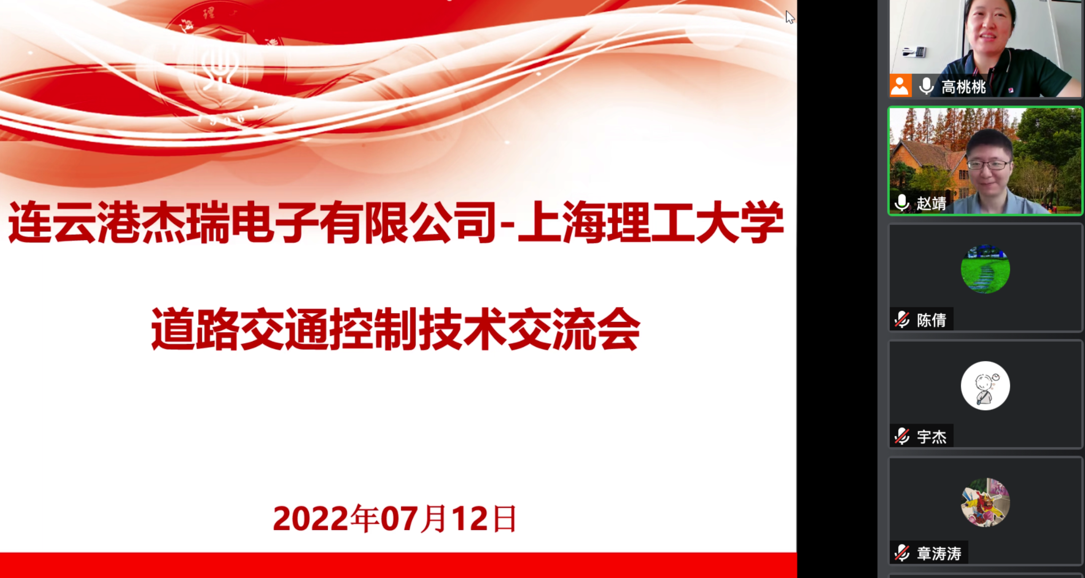 7月12日,连云港杰瑞电子有限公司(以下简称杰瑞电子)与交通系统工程系举行线上技术交流会。杰瑞电子智慧城市事业部副总经理高桃桃、智慧城市事业部副总经理朱圣发、车路协同事业部部长章涛涛、车路协同事业部副部长张新军、南京研发分部主任张宇杰、BOB半岛·体育官方网站交通系统工程系系主任赵靖以及教师和博士后代表刘鹏飞、陈倩、章程出席本次会议。交流期间,校企双方围绕科研服务、科研项目申报等方面展开深入探讨。