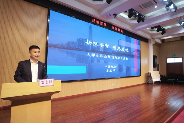 课堂上,姜志祥以中国银行为例,讲述中国金融业发展史,以及金融业在中国改革开放进程中的突出作用,结合生动的真实案例,深入浅出地讲解了《商业银行业务与经营》的理论知识,让同学们加深了对商业银行经营管理理论与实践的理解,并感受到历代金融人的爱国情怀、责任担当和职业精神。姜志祥还以上海理工大学杰出校友林贝聿嘉为例,阐释了优秀文化传承在职业发展中的重要作用。他还对金融专业的学生如何进行职业规划给予指导,建议同学们在工作和生活中要学会换位思考,以高情商、大格局赢得未来,并提醒大家今后要严守金融业的职业底线,不犯原则性错误。最后,他用黑格尔的名句,“目标有价值,生活才有价值。有价值的目标才能铸就有价值的生活”寄语同学们“扬帆逐梦、普惠致远”。