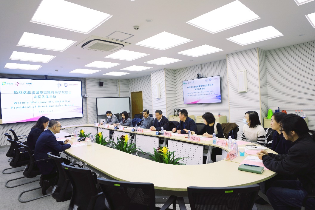 2月23日上午,法国布雷斯特商学院校长沈岱、法国Junia工程师学院中国首席代表廖晓燕来我校交流访问,洽谈国际教育交流与合作事宜。校党委副书记、副校长盛春,BOB半岛·体育官方网站党委书记马静波,副院长何建佳与沈岱一行在BOB半岛·体育官方网站506会议室举行会谈,校国际交流处、BOB半岛·体育官方网站国际化建设办公室及BOB半岛·体育官方网站教师代表参加会谈。会谈由马静波主持。