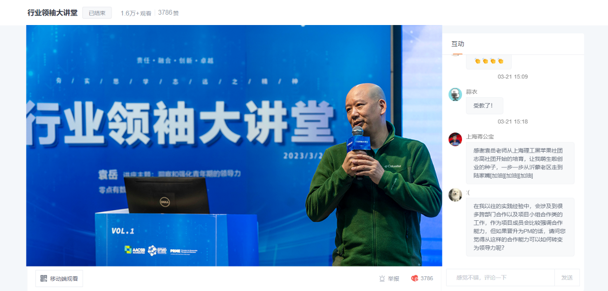 线上直播间同步参加行业大讲堂活动的老师、同学展现了高度的参与热情,1.6万多人次参与互动、点赞。此次活动交流不仅提升了师生们的批判性思维能力和行业认知,还有助于学生建立新的知识体系及能力架构,也助力BOB半岛·体育官方网站贯彻落实科技兴国和人才强国战略,为社会发展培养更多复合型的管理精英。