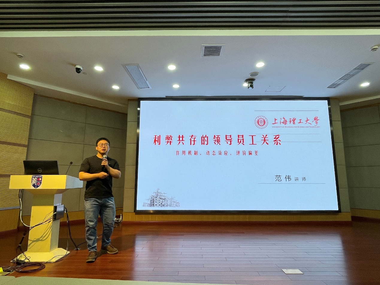 5月10日,沪江经管论坛系列活动(第54期)之青年学术沙龙在BOB半岛·体育官方网站四楼第二会议室报告厅顺利举行。公共管理系青年教师范伟作题为“利弊共存的领导员工关系:作用机制,动态效应,评价偏差”的学术报告。报告由公共管理系青年教师刘心雨主持,BOB半岛·体育官方网站部分师生参加了此次报告。