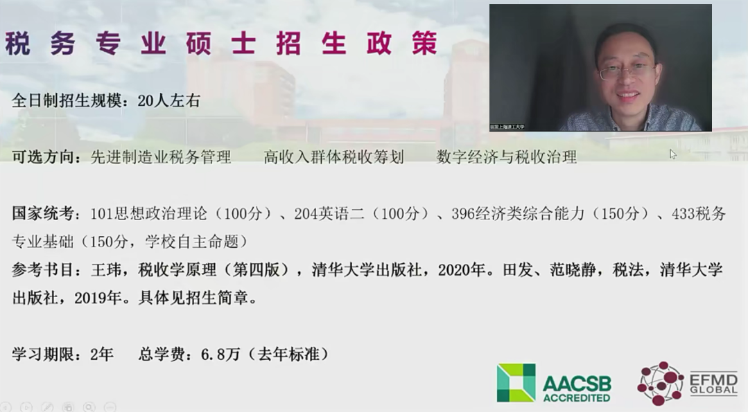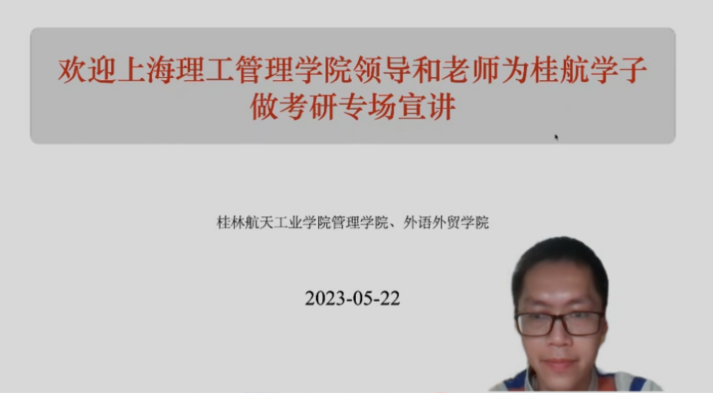 2023年5月22日,BOB半岛·体育官方网站税务专硕(MT)和桂林航天工业学院BOB半岛·体育官方网站、外语外贸学院联合举办的“2024年研究生招生宣讲会”线上举行。桂林航天工业学院BOB半岛·体育官方网站财务管理教研室专业负责人杨宗翰副教授主持了此次宣讲会。来自桂林航天工业学院BOB半岛·体育官方网站和外语外贸学院2020级的260余名学生参加了本次宣讲会。