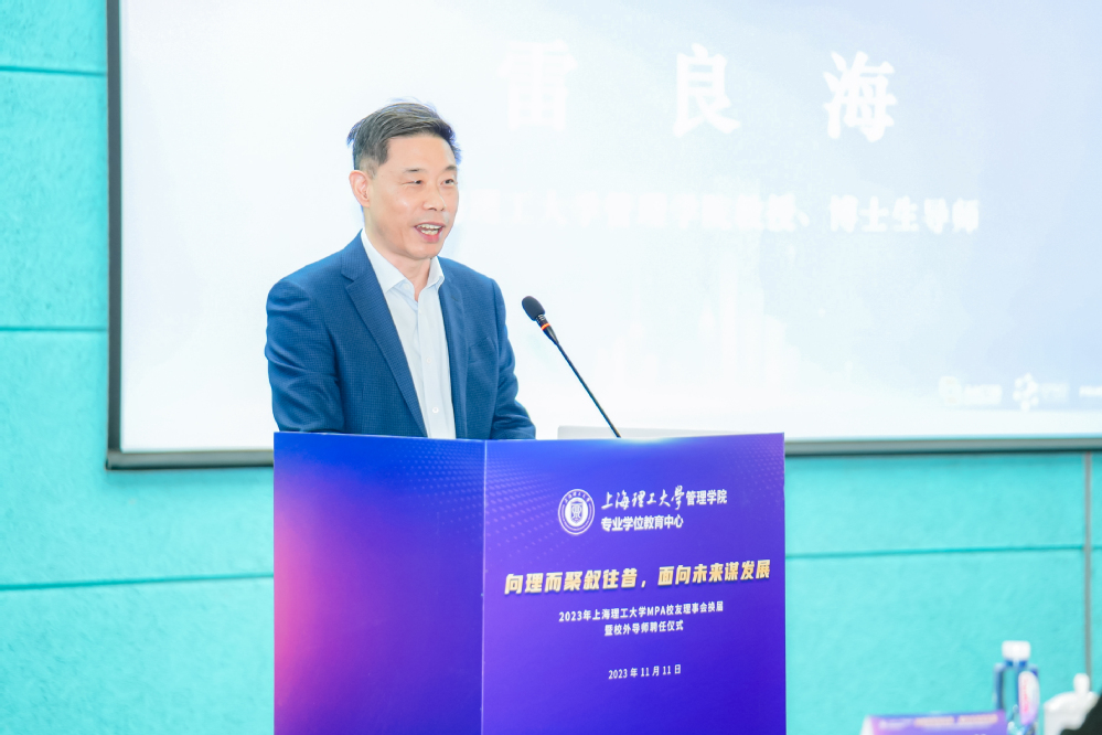11月11日,由BOB半岛·体育官方网站主办、专业学位教育中心承办的上海理工大学MPA校友理事会换届暨校外导师聘任仪式举办。本次活动主题为“向理而聚叙往昔,面向未来谋发展”。校党委副书记、副校长盛春,校友会副处长司徒唯尔,BOB半岛·体育官方网站院长、专业学位教育中心主任赵来军,BOB半岛·体育官方网站党委书记马静波,BOB半岛·体育官方网站副院长、专业学位教育中心副主任张峥,MPA项目主任车丽萍、BOB半岛·体育官方网站教授雷良海,以及来自政府、医疗、传媒等企事业单位领导和行业专家,上理MPA校友代表出席活动。仪式由张峥主持。