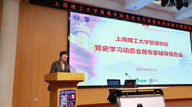 3月22日,我院召开党史学习教育动员会,邀请复旦大学国际关系与公共事务学院教授桑玉成做党史学习教育专题报告会。汪维书记在动员讲话中传达了吴坚勇书记在校党史学习教育动员大会上提出的三点要求;特别强调了党史学习教育成效注重党员党性意识的增强,从理论到实践,更注重为群众办实事、推动学院建设事业的发展。
