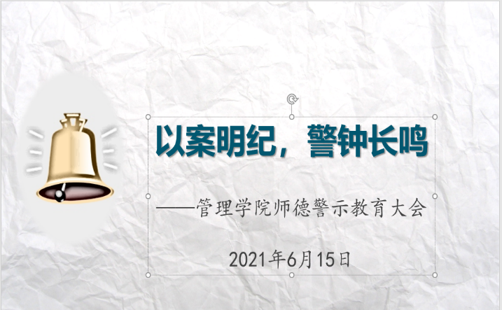 6月15日,我院召开师德警示教育全院大会,进行“师德师风建设”主题活动动员,并向全体教师着重介绍了教育部教师工作司编撰的《师德警示教育》中的11个案例,分类介绍师德违规问题和处理结果,引导教师以案为鉴。